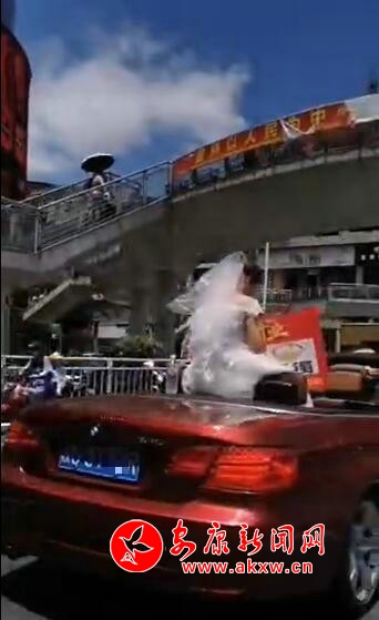 本網(wǎng)訊(通訊員 唐波)6月18日,漢濱公安分局交警大隊接到網(wǎng)友舉報稱:今天中午12點左右,在中心城區(qū)金州路有商家利用四輛敞篷轎車在道路上做巡游宣傳,車上的四位“新娘”均坐在后排中間部位,將身體伸出車外,存在妨礙安全駕駛的違法行為。
