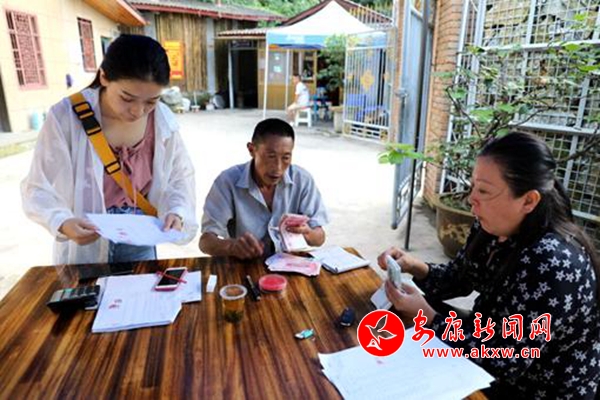 8月6日中午1點(diǎn),在鳳凰村12組,合作社財(cái)務(wù)人員楊海江用休息時(shí)間給在園區(qū)務(wù)工人員發(fā)5月和6月工資。
