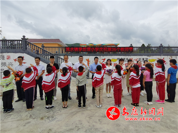 本網(wǎng)訊(記者 毛明星)9月10日上午,藍天白云,風和日麗,在漢濱區(qū)流水鎮(zhèn)學坊埡小學的操場上,慶祝第36個教師節(jié)活動在雄壯的樂曲中開始了,一排整齊的學生將一速速鮮花上臺送給了教師的手中,表達了學生們對自己老師的敬畏,同時,今年建成的“學坊埡社區(qū)幼兒園”迎來的第一批學生也整齊地排坐在學校的操場上,使整個會場洋溢著團結(jié)奮進的氣氛。