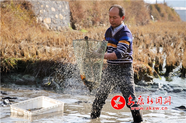 “一上午撈了100多公斤魚,收購價是8塊錢,能賣1600元。家里種了兩畝稻田,稻米、稻魚兩項(xiàng)加起來預(yù)計(jì)能收入5000元。”張遠(yuǎn)林說。