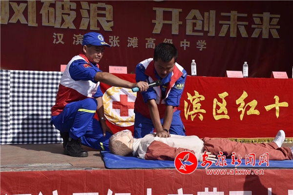 活動中,漢濱區(qū)區(qū)紅十字藍(lán)天志愿服務(wù)隊的隊員們結(jié)合溺水事故案例,對防溺水應(yīng)急處理、心肺復(fù)蘇等救護(hù)技能進(jìn)行了系統(tǒng)的講解和演示。隨后學(xué)生們組成的百人演練團(tuán)在專業(yè)老師的指導(dǎo)下完成了心肺復(fù)蘇的實(shí)際操作。