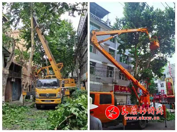 針對群眾這一“煩心事”, 社區(qū)結(jié)合實際情況以及居民意愿,討論后將其列入“我為群眾辦實事”項目清單,將大梧桐樹砍伐形成方案,按程序向市住建局遞交申請報告,并與供電部門、綠化管理處專業(yè)人員取得聯(lián)系進行現(xiàn)場勘查,最終決定于6月9日—11日對大小北街的梧桐開展修剪。