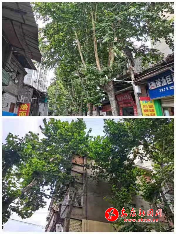 地處大北街社區(qū)內(nèi)的大、小北街,民房高低錯落,很多房屋都是老式磚木房,當時為了美化環(huán)境在道路兩邊種下的梧桐樹。幾十年過去,街道兩邊綠樹成蔭,然而,“節(jié)外生枝”的梧桐與電線、房屋相互纏繞,嚴重影響了居民室內(nèi)采光,且安全隱患凸顯。