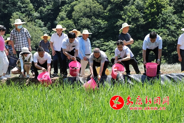 本網(wǎng)訊(通訊員 周濬)“稻在水中長(zhǎng),魚(yú)在稻下游。”6月22日,位于安康市漢濱區(qū)北山的大河鎮(zhèn)流芳村,村民在稻田里投放魚(yú)苗,一幅秧苗青、魚(yú)兒歡的田園畫卷鋪展開(kāi)來(lái)。