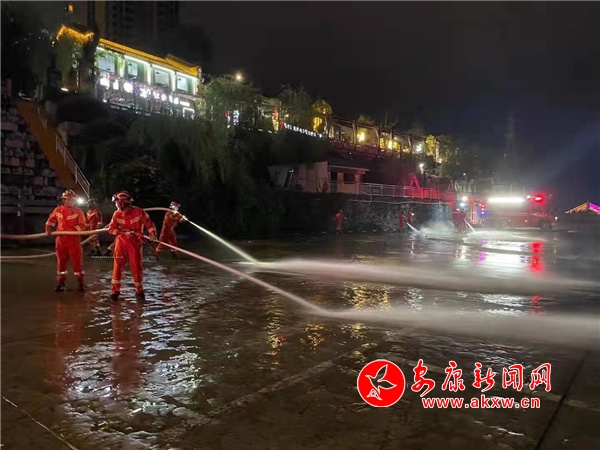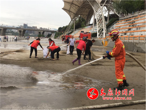 本網(wǎng)訊(通訊員 熊彬彬 李汶澤)日前,安康各縣區(qū)普降大雨,漢江水位持續(xù)上漲,城區(qū)沿江公園、步道等多處被淹。隨著水位回落,清理淤泥工作迫在眉睫。為盡快清理龍舟文化園臨江廣場上沉積的大量淤泥,避免淤泥干結(jié)加大清理難度,老城街道辦事處漢江辦、西關(guān)社區(qū)隨即聯(lián)系到漢濱區(qū)消防大隊協(xié)商開展清淤活動,漢濱區(qū)消防大隊表示志愿進行淤泥清理行動,盡快恢復(fù)環(huán)境衛(wèi)生,及早還廣大市民干凈整潔的娛樂生活環(huán)境。