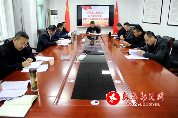 本網(wǎng)訊(通訊員 劉華渝)11月24日,漢濱區(qū)人民法院召開(kāi)黨組會(huì)議,學(xué)習(xí)貫徹習(xí)近平總書(shū)記在黨的十九屆六中全會(huì)上的重要講話和全會(huì)精神。