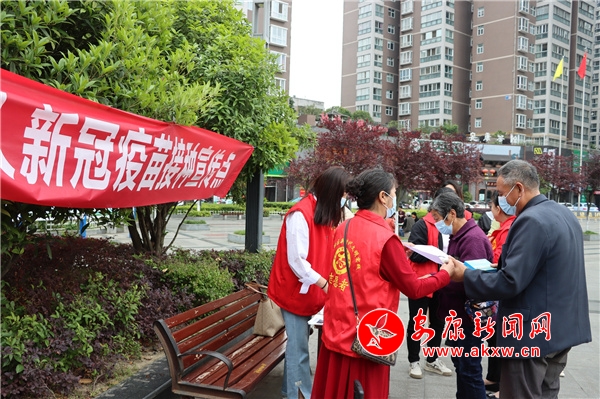 定點(diǎn)宣傳,以點(diǎn)帶面。“姨,你接種了新冠疫苗了沒(méi)?”“現(xiàn)在全國(guó)已經(jīng)有2億多和您一樣的老年人都已經(jīng)接種了,接種對(duì)咱們自己的健康是最有力的保障”,5月18日早上,在培新街街口的一個(gè)固定宣傳點(diǎn)位上,社區(qū)干部、志愿者正在為過(guò)往的居民群眾宣傳普及疫苗接種相關(guān)知識(shí)。同樣,在橋西廣場(chǎng)的東南角“老城街道老年人新冠疫苗接種宣傳點(diǎn)”橫幅格外亮眼,街道包聯(lián)部門、社區(qū)工作人員正在為廣場(chǎng)休閑的老年人發(fā)放《致轄區(qū)老年人接種新冠疫苗的倡議書》。