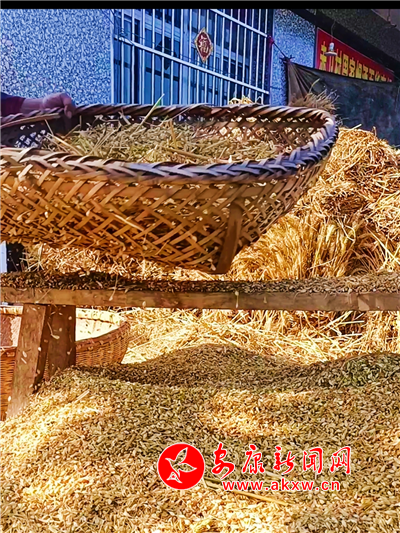 6月6日,驕陽似火。漢濱區(qū)赤衛(wèi)村周全洪一家忙得不亦樂乎,他戴著草帽和口罩,將麥穗一把一把喂進(jìn)脫粒機,幫忙的鄰居們或抱捆持簸或木叉飛揚,妻子不停地晃動手中竹篩,金燦燦的麥粒散落成堆,女兒夢蝶一邊端茶水遞毛巾,一邊用手機直播:“這是陜南農(nóng)村傳統(tǒng)的打麥子方式。”“形象很酷,動作很帥……是不是?”“要吃富硒新麥子,可以呀!”益農(nóng)的“新農(nóng)具”,帶貨又漲粉。