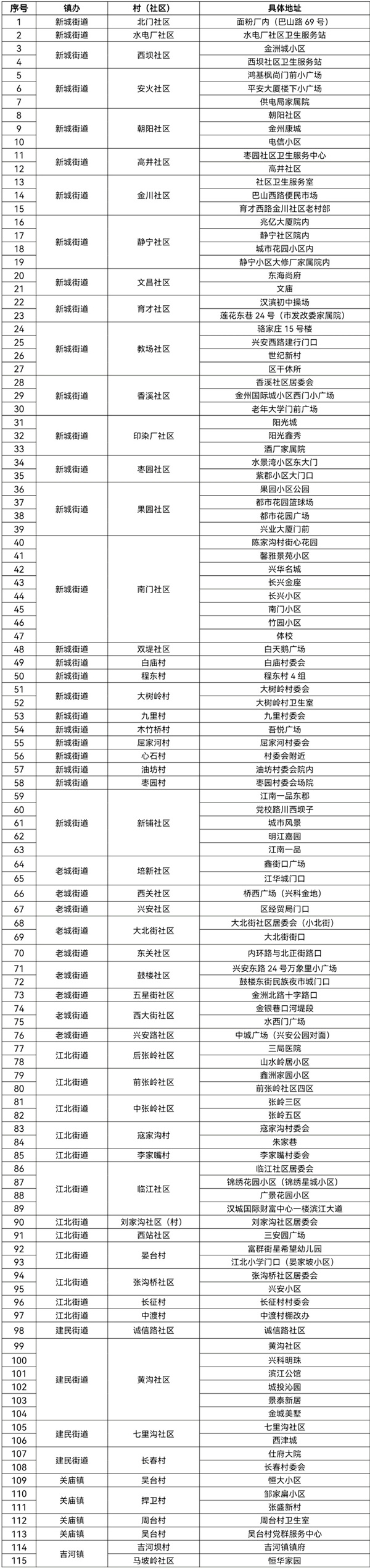 附件:漢濱區(qū)中心城區(qū)全員核酸檢測采樣點(diǎn)一覽表