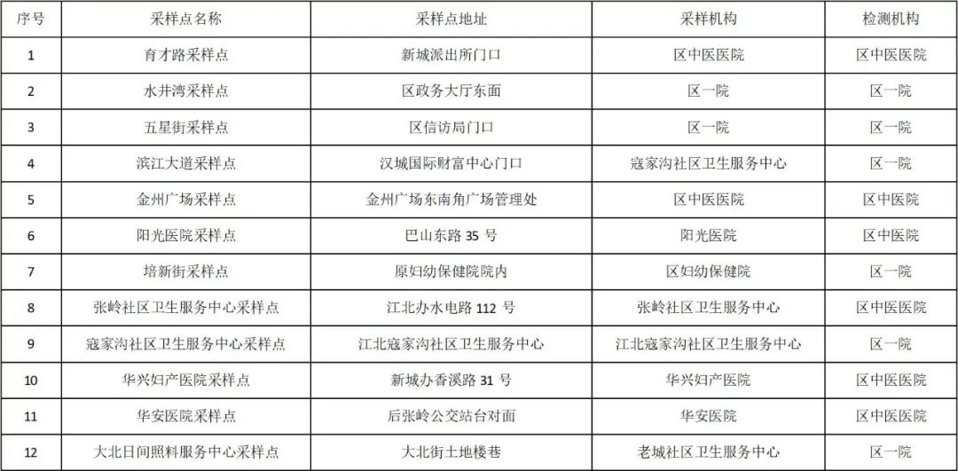 點位設(shè)置:在中心城區(qū)設(shè)置固定核酸采樣點12個