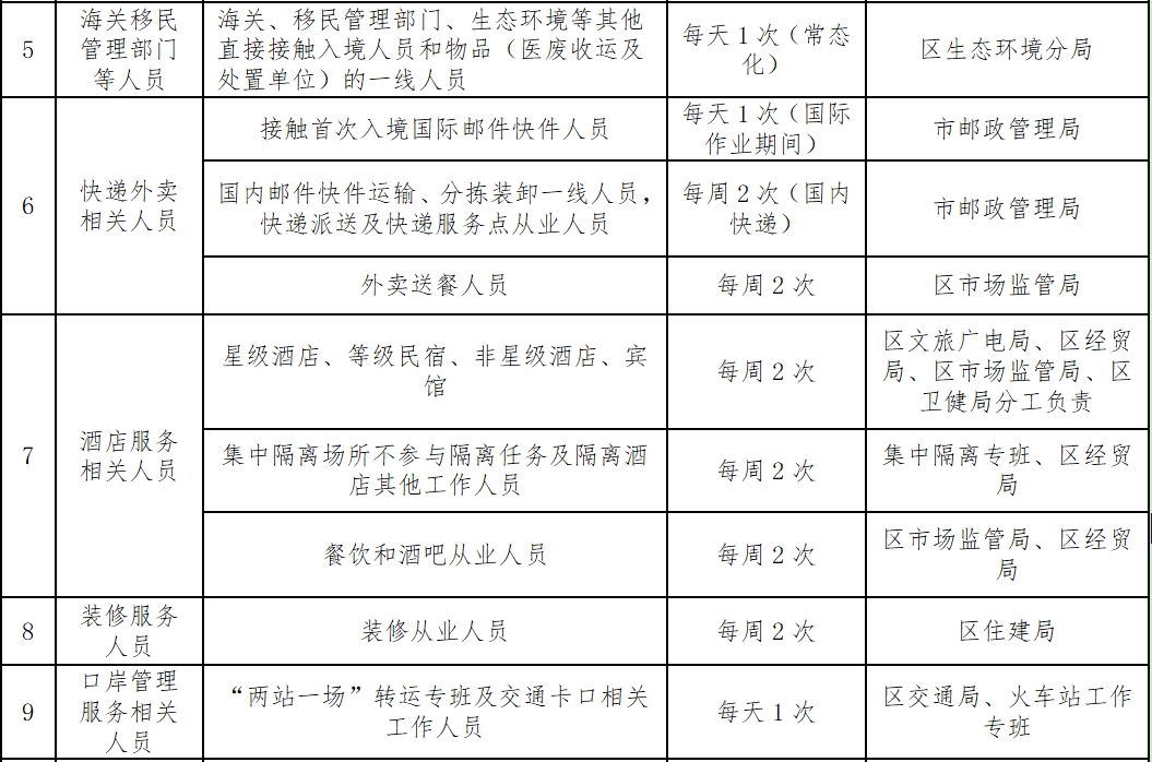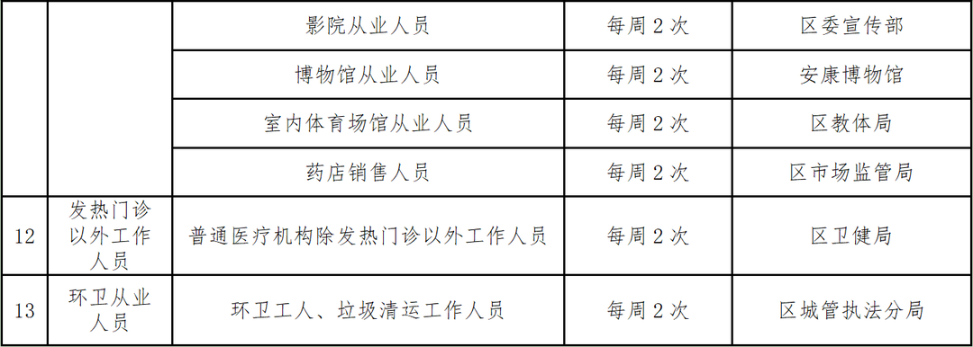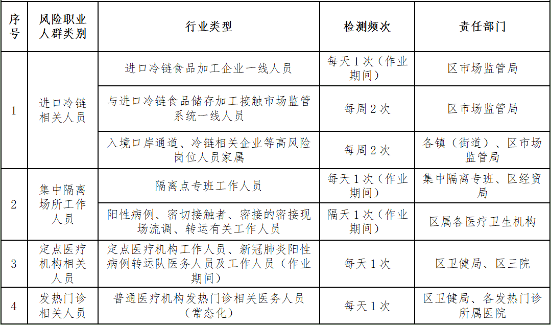 風(fēng)險職業(yè)人群周期性核酸檢測一覽表