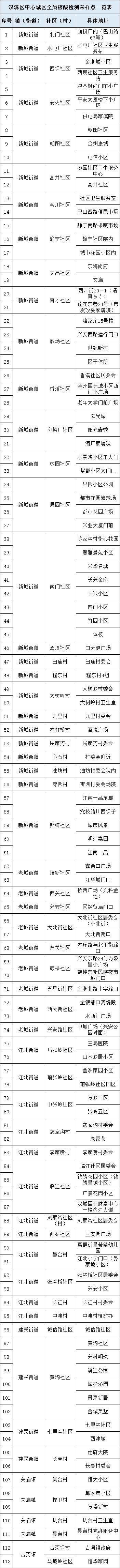 共設(shè)置113個采樣點(見附件),由各街道、鎮(zhèn)政府統(tǒng)一安排采樣點設(shè)置、人員組織、秩序維護。檢測對象按照街道和鎮(zhèn)政府要求,分時段有序到指定地點進行采樣,避免人員聚集。