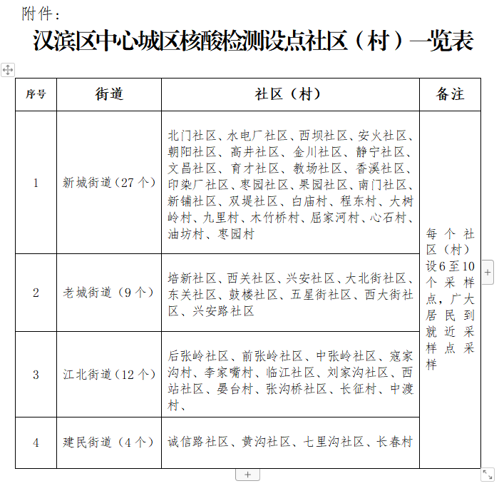 附件:漢濱區(qū)中心城區(qū)區(qū)域核酸檢測設(shè)點社區(qū)(村)一覽表