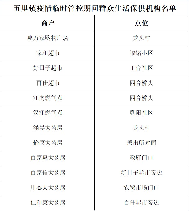 附:五里鎮(zhèn)疫情臨時(shí)管控期間群眾生活保供機(jī)構(gòu)名單Sv2安康新聞網(wǎng)