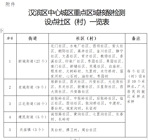 附件:漢濱區(qū)中心城區(qū)重點區(qū)域核酸檢測設(shè)點社區(qū)(村)一覽表