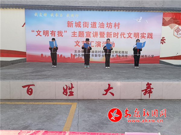 本網訊(通訊員 徐聰)3月3日,由油坊村新時代文明實踐站主辦,安康市新華書店、市廣電網絡、漢濱區(qū)城東小學協(xié)辦“文明有我”主題宣講暨新時代文明實踐文藝匯演活動在油坊村舉行。