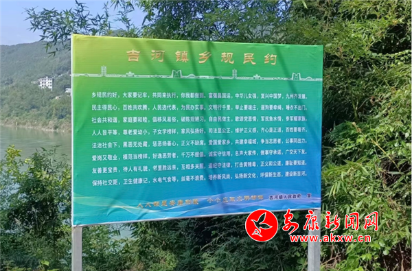 鄉(xiāng)村要美,美在文明;民風(fēng)要正,正在村規(guī)。如今,漫步在吉河鎮(zhèn)任何一個(gè)村,主干道上、活動(dòng)室周邊佇立的“村規(guī)民約”“善行義舉榜”“社會(huì)主義核心價(jià)值觀”宣傳牌都分外醒目,時(shí)刻提醒著村民要遵守行為規(guī)范,讓來(lái)往群眾在潛移默化中受到教育和熏陶。