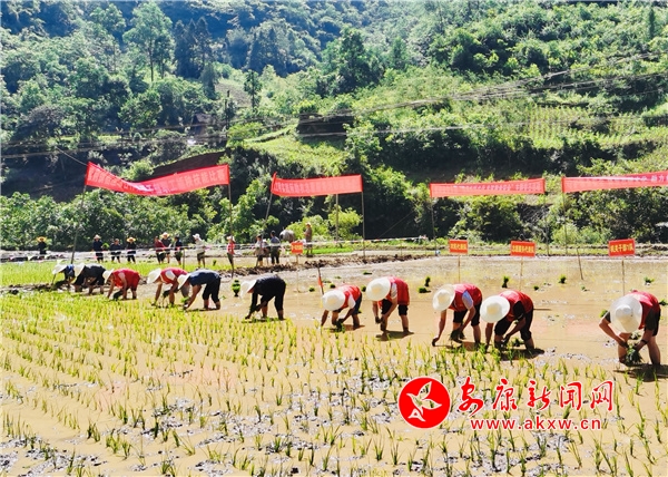 “傳承農(nóng)耕文化 共筑糧食安全。”活動現(xiàn)場,干部群眾熱情高漲,干勁兒十足,協(xié)同進(jìn)行水稻秧苗移栽,每支隊(duì)伍參賽選手在田間橫向排列,埋頭彎腰,按照“淺、直、滿、勻、齊”的標(biāo)準(zhǔn),一手拿著稻苗,另一手快速從中分秧、插秧,腳步過處,一排排綠油油的秧苗在田間均勻落下。
