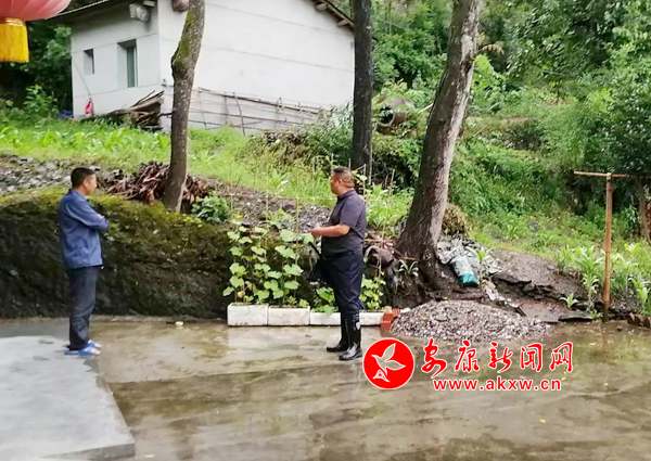 簡短布置任務(wù)后,“四支隊(duì)伍”工作人員趕赴本村9組的幾戶有滑坡危險(xiǎn)的農(nóng)戶家,詳細(xì)查看其房前屋后情況,并叮囑監(jiān)測人及戶內(nèi)成員,要密切關(guān)注雨情變化,服從工作人員的安排,監(jiān)測部位每一小時要巡查一次。遇有異常情況要及時報(bào)告,并果斷采取撤離措施,第一時間將人員撤離到指定的安置戶家中,確保生命安全,同時要求鄰里之間的要發(fā)揮鄰里互幫作風(fēng),積極協(xié)助監(jiān)測人做好信息傳遞和人員轉(zhuǎn)移、撤離工作。