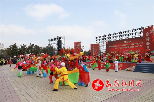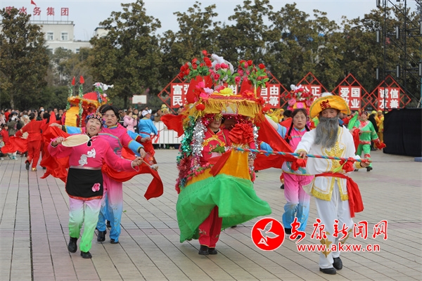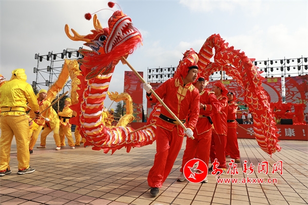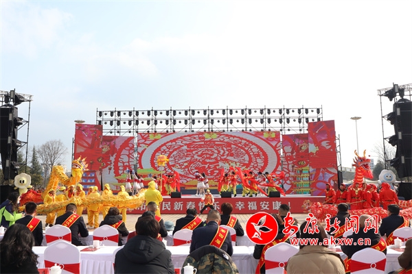 在金州廣場,身著各色演出服裝的演出隊伍早早就來到了現(xiàn)場為表演做準(zhǔn)備,隨著一聲鑼鼓敲響,開場舞蹈《盛世歡歌》拉開活動序幕,花鼓表演唱《花為媒》、女聲合唱《火火的中國》、少兒舞蹈《百花舞》、戲曲聯(lián)唱《新春納福唱二黃》、漢調(diào)二黃歌舞《非遺賀新春》等節(jié)目陸續(xù)上演,營造起了濃濃的節(jié)日氛圍。演員們踏著喜慶的鼓點,和著歡快的節(jié)拍舞動起來,現(xiàn)場彩龍飛舞,雄獅翻騰,盡顯傳統(tǒng)民俗文化魅力。市民們大飽眼福,紛紛用鏡頭記錄下了各種精彩瞬間。