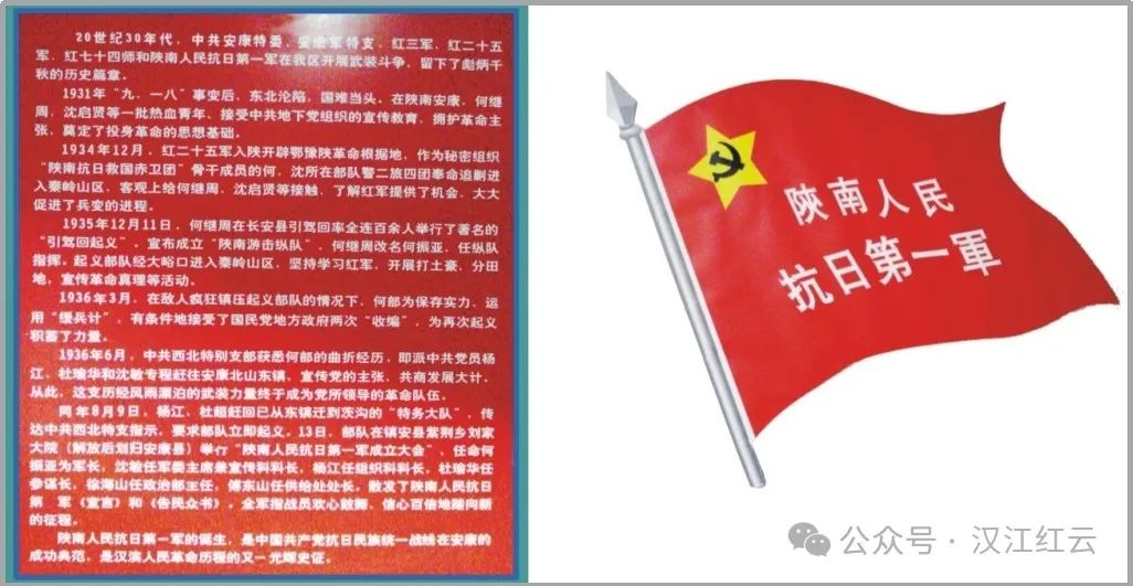 1936年8月13日,根據(jù)黨的指示,何振亞等人在紫荊河劉家大院正式宣告成立陜南人民抗日第一軍。何振亞任軍長,沈啟賢、杜瑜華任參謀長。“西安事變”發(fā)生后,中共西北特支將陜南人民抗日第一軍交由中共中央代表羅瑞卿同志負責接收。1936年12月20日,根據(jù)周恩來同志的指示,中共西北特支領導人徐彬如以“西救會”名義在西安舉行中外記者招待會上公開宣布:“在陜南有抗日第一軍的建制”。至此,陜南抗日第一軍揚名中外。
