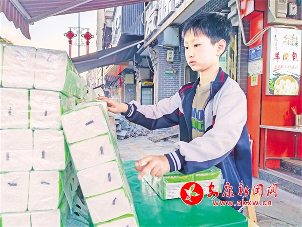 同時(shí),花三還將丁凱家的情況介紹給了身邊的朋友,并把丁凱家的情況和小文杰賣紙巾的事拍成了小視頻,在抖音平臺(tái)發(fā)布。在花三和其他網(wǎng)友的共同推動(dòng)下,越來越多的愛心人士聯(lián)系上了丁凱,愿意免費(fèi)為他們提供場所,讓他們擺放餐巾紙自助銷售。