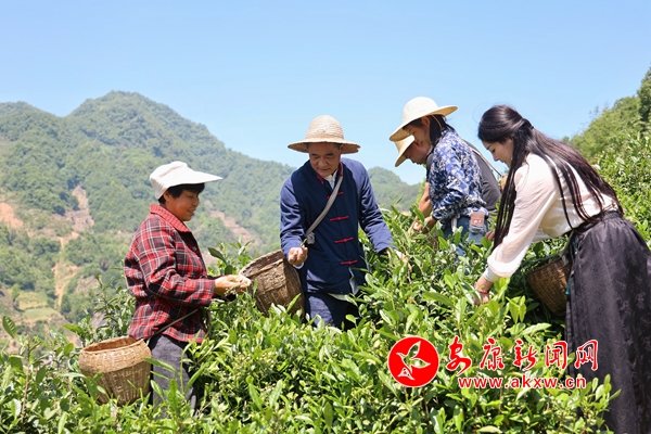 立夏時節(jié),漢濱區(qū)大竹園鎮(zhèn)茶棧村,王春久和茶農(nóng)們在海拔800米之上的高山茶園采摘鮮葉,制作春茶過后頭采夏茶。