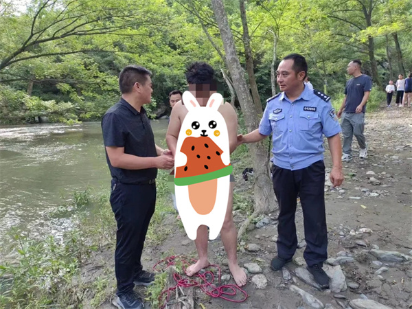 到達(dá)現(xiàn)場后,發(fā)現(xiàn)受困男子已被急流沖在河中樹杈里動彈不得,且因困水受驚嚇,已經(jīng)出現(xiàn)脫力、手腳發(fā)軟現(xiàn)象,情況緊急,程加玉顧不得多想,就和旁邊的熱心群眾一起迅速脫衣下水,以自身之力托起群眾之身,幫助他抓緊繩索建立防線。緊隨其后到達(dá)現(xiàn)場的吉河派出所輔警張全銀、王仁靜,以及鎮(zhèn)長黨信恩等鎮(zhèn)干部現(xiàn)迅速配合、固定繩索、投送游泳圈,幫助程家玉、程加亮合力開展救援,成功將受困者從激流中解救出來。經(jīng)上岸后檢查,該男子雖受驚嚇,但身體并無大礙。