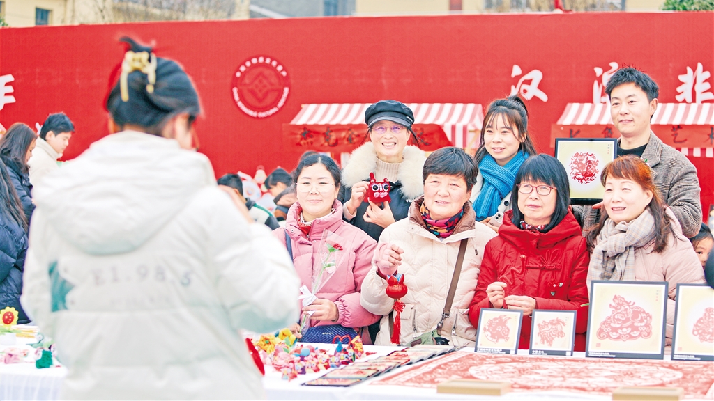 剪紙愛(ài)好者在馮增慧的剪紙攤位前打卡拍照 羅妍 攝