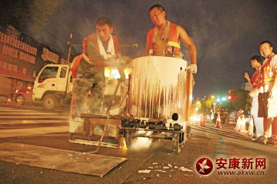 8月14日晚,施工人員正在給新城北門十字劃人行橫道標(biāo)線。據(jù)工程負(fù)責(zé)人介紹,為迎接雙創(chuàng)驗(yàn)收,他們從8月9日至17日給城區(qū)的各路段進(jìn)行道路標(biāo)線,預(yù)計(jì)工程量達(dá)萬(wàn)余平……