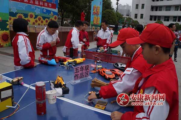 19日,校園科技節(jié)進入最后的競賽、展示階段。操場四周掛滿了學生優(yōu)秀科技小報和科幻畫,參觀的同學們仿佛徜徉在神秘的科幻世界,為科技節(jié)營造了濃厚的活動氛圍。一至三年級學生進行了自制紙飛機比賽,小小的飛機承載著童年的科技夢想漫天飛舞。四至六年分別在舞臺前設立了科技小制作展覽區(qū),由小志愿者引導大家有序參觀并進行操作講解。各種奇思妙想讓垃圾“變廢為寶”引得同學們贊嘆不已;飲料瓶、泡沫紙做成的坦克、天平、插花讓人大開眼界;特別是遙控飛機、自制飛行器的展示表演讓大家感受到現(xiàn)代科技的無窮魅力......此外,組委會還對本次紙飛機比賽、科技作品的參評者進行了表彰獎勵,號召同學們“全員參與、積極實踐、大膽想象、勇于創(chuàng)新”,做一個有夢想的社會主義接班人。