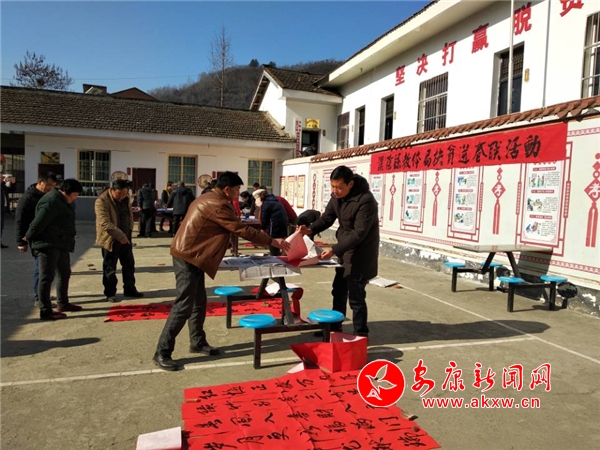 從1月22日開始,教體局組織黨員干部深入幫扶貧困村,為貧困戶義寫春聯(lián)活動,將春聯(lián)送到貧困戶手中。書法家們現(xiàn)場揮毫潑墨、筆走龍蛇,領(lǐng)取春聯(lián)的村民接踵而來,整個村部洋溢著濃郁的節(jié)日氣息,紅紅的春聯(lián)、濃濃的祝福,映紅了張張笑臉,溫暖了貧困戶的心窩。貧困戶紛紛稱贊,以前春聯(lián)都是街上買的,教體局組織送春聯(lián)活動,感覺味道不一樣,心里高興,感謝國家好政策,不忘黨和政府的關(guān)懷,從書法家們的書法作品中汲取力量,在黨的十九大春風(fēng)吹動下,奮力脫貧致富,建設(shè)美好的新生活。“脫貧攻堅送來黨的溫暖,幫村聯(lián)戶譜寫致富新篇”、“新時代迎來新氣象,新作為結(jié)出新成果”……一副副墨寶飄香的春聯(lián),寫出了村民對新的一年的期盼,描繪了大家對脫貧致富美好生活的憧憬和向往。