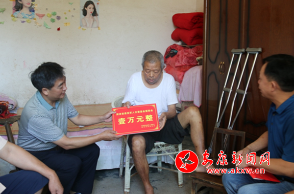 本網(wǎng)訊 (通訊員 方祎峰) 8月15日,漢陰縣委常委、縣政府副縣長李宗山帶領(lǐng)縣退役軍人事務(wù)局、縣慈善協(xié)會等單位上門為王懷榮、彭書強、陳友根三位困難退役軍人送去了省級第二批“關(guān)愛基金”援助金各1萬元。