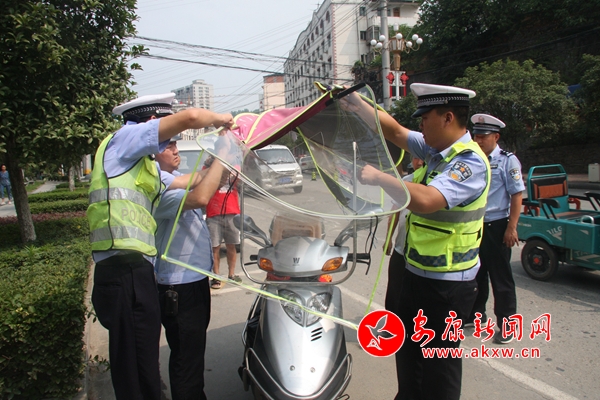 據(jù)統(tǒng)計,漢陰公安交管部門共累計出動警力120余人次,出動警車20輛次,查獲無證駕駛12起,酒駕2起,其它交通違法行為45起,口頭警告糾違騎乘摩托車、電動摩托車未佩戴頭盔120起,收繳拆除違規(guī)加裝遮陽棚(傘)105起,懸掛宣傳橫幅20余條,利用LED電子顯示屏滾動播放提示信息120條,張貼通告100余份,發(fā)放《致全縣摩托車、電動摩托車騎乘人員的一封信》5000余份。同時,還邀請電視臺記者隨警作戰(zhàn),對典型違法行為進行曝光,營造濃厚交通安全宣傳輿論氛圍。
