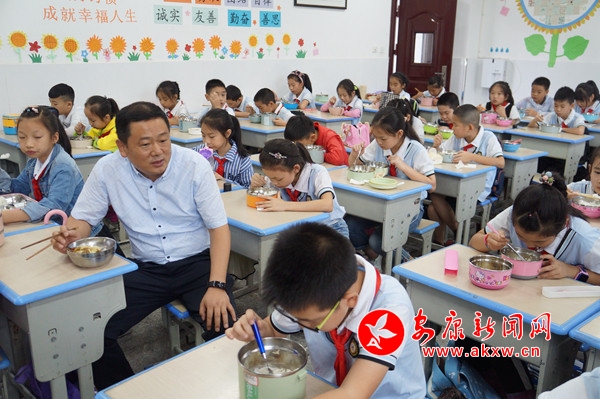 “好香啊,真好吃”,為讓學生吃得營養(yǎng)健康,該校特意在早餐準備了西紅柿雞蛋湯和熱乎乎的饅頭,午餐是雞塊燒土豆、熗大白菜和米飯,孩子們一邊品嘗著香噴噴的飯菜,一邊連連稱贊。在老師的教育引導下,孩子們認真用餐,井然有序。同時,該校班子成員還分別深入到各年級進行陪餐,及時了解飯菜質(zhì)量和學生用餐情況。