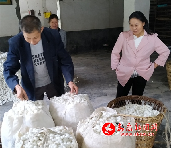 “今年我已經(jīng)養(yǎng)6張蠶了,每公斤四十多元,賣了一萬(wàn)多元,讓我更加堅(jiān)定了今后養(yǎng)蠶的信心”。澗池鎮(zhèn)五坪村的建檔立卡貧困戶劉世群拿著一沓貨款站在蠶繭收購(gòu)站門口,樂(lè)滋滋地向筆者算著她的“致富賬”。