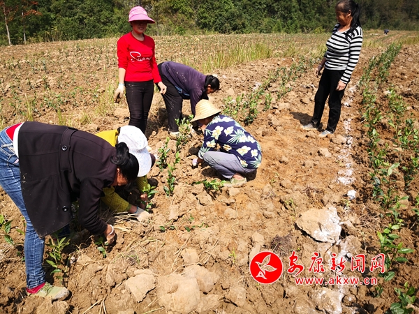 雨過天晴,陜西安康漢陰縣磨壩村茶葉經(jīng)濟合作社一片忙碌,貧困戶們正搶抓墑情栽種茶苗。該合作社計劃發(fā)展種茶300畝,目前已經(jīng)栽種120畝,預計產(chǎn)值300萬元,能帶動92戶貧困家庭穩(wěn)定增收。(辜大勇 攝)mxz安康新聞網(wǎng)