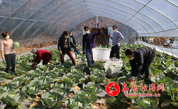 溫室大棚里,成熟的蔬菜紫甘藍(lán)一片豐收,村民們戴著口罩,正在忙碌的收摘蔬菜,據(jù)合作社的村民說(shuō)這批純天然“好貨”他們還沒(méi)舍得吃,是要送給奮戰(zhàn)在抗疫一線的“最美人”的。
