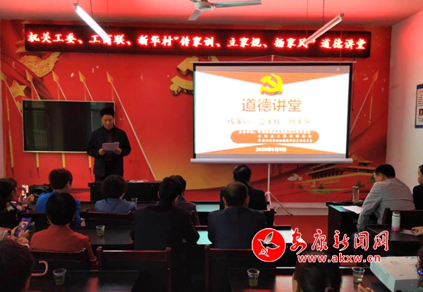本網(wǎng)訊 (通訊員 張瑤虹)為統(tǒng)籌推進黨風(fēng)廉政、黨員教育、新民風(fēng)建設(shè)和脫貧攻堅工作。5月9日上午,漢陰縣直機關(guān)工委、縣工商業(yè)聯(lián)合會和新華村黨支部聯(lián)合,率先在全縣舉辦了以“傳家訓(xùn)、立家規(guī)、揚家風(fēng)”為主題的一期家風(fēng)家訓(xùn)道德講堂?h直機關(guān)工委、縣工商聯(lián)、新華村黨員干部及部分群眾代表共計50余人參加了本次活動。