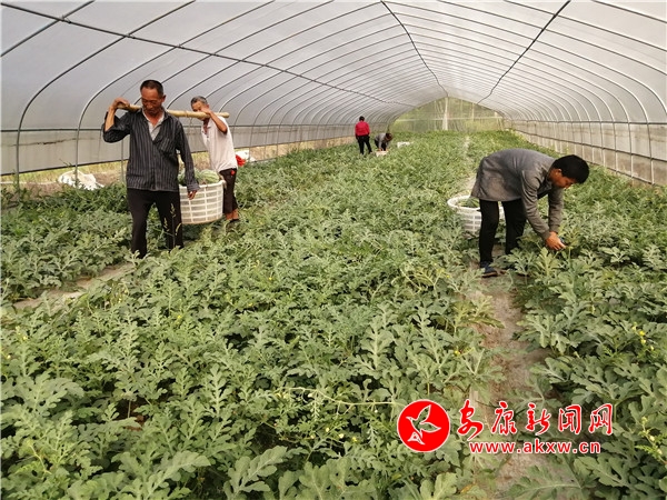 今年初春,西瓜育苗、栽植時節(jié)正值新冠肺炎疫情高峰期,但春耕生產(chǎn)并未延誤。村干部每天到園區(qū)為務(wù)工的村民發(fā)口罩、量體溫、消毒,在做好疫情防控的同時也搶抓了農(nóng)時。種瓜是勞動密集型產(chǎn)業(yè),除草、施肥、打頭、采摘、裝箱、裝車......,在龍埡蔬果產(chǎn)業(yè)體驗園里,每天都有10多名當?shù)卮迕翊蚬ぃ咳嗣刻煊?00余元的收入。
