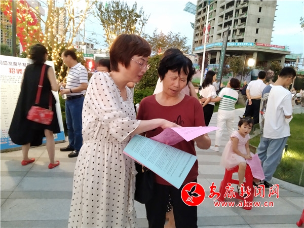當(dāng)晚七點(diǎn),各展位攤前,人來人往,熱鬧非凡,有帶著孩子的婦女為丈夫咨詢的,有老人為自己的兒女詢問的,也有剛畢業(yè)的大學(xué)生來找合適崗位的,前來咨詢的絡(luò)繹不絕。家住城關(guān)鎮(zhèn)御景龍城的蔣友愛女士,早早地來到招聘現(xiàn)場,在展位攤前駐足、詢問招聘信息。據(jù)她介紹,今天在這里是想給女兒找一個合適的崗位,女兒去年大學(xué)畢業(yè),一直呆在西安,最近想回家在家附近找個工作。她表示,今天的崗位多,好多企業(yè)開出的工資待遇也還不錯,把招聘信息拿回去拍給女兒看,女兒能留在身邊就業(yè)掙錢,還能照顧家里,最好不過啦。