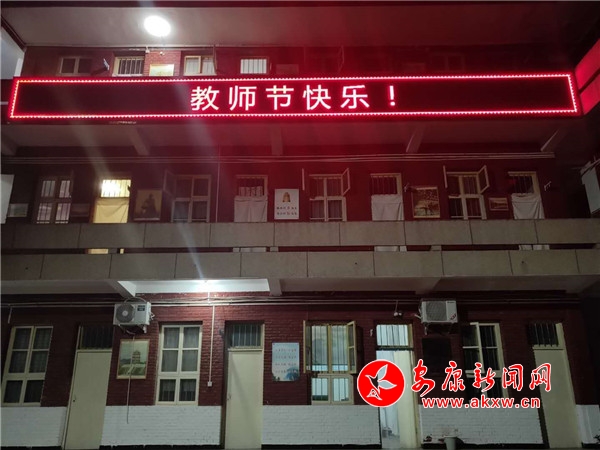 本網(wǎng)訊(通訊員 林愛銘 汪付艷)9月10日、在第36個教師節(jié)當晚,“老師,您好!”“老師,您辛苦了”“教師節(jié)快樂!”“立德樹人奮進擔當,教育脫貧托舉希望”等溫馨的標語紛紛出現(xiàn)在漢陰縣的各部門、各鄉(xiāng)鎮(zhèn)、各社區(qū)、各企事業(yè)單位以及地標性建筑和大街小巷的電子顯示屏上,一盞盞閃爍的燈光、一句句簡單而又平實的話語,無不包含著社會各界對廣大教育工作者的真誠祝福。