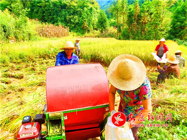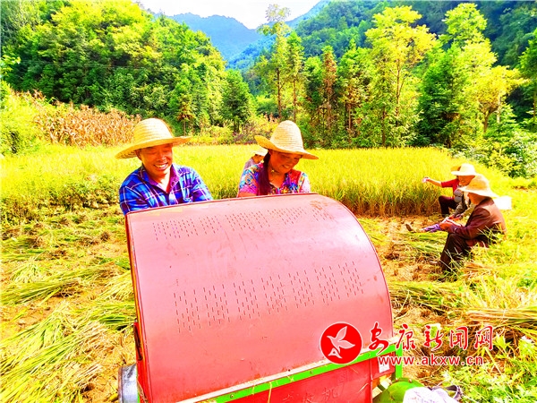 金秋時節(jié),漢陰縣轄區(qū)11萬余畝富曬水稻陸續(xù)成熟。當?shù)剞r(nóng)民搶抓農(nóng)時開鐮收割,確保富硒稻顆粒歸倉,鄉(xiāng)村田野到處是一派繁忙的豐收景象。 (張輝/圖文)7te安康新聞網(wǎng)