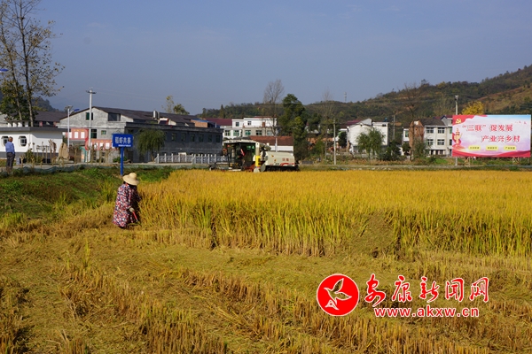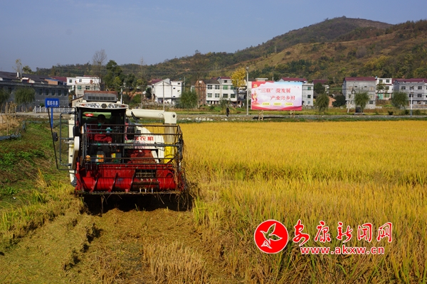 本網(wǎng)訊 (通訊員 黃小柳 晏彬)立冬之日,走進(jìn)漢陰縣雙乳鎮(zhèn)江河村,只見(jiàn)那金色的稻田旁鄉(xiāng)村小路蜿蜒而去,兩岸小樓拔地而起。風(fēng)兒輕拂,金黃稻穗低頭搖擺,稻香股股卷入鼻孔使人傾醉,稻田里的收割機(jī)唱著歡歌,正在稻田里來(lái)回穿梭,將沉甸甸的稻穗攬入“懷中”,為全年的辛勞付出畫(huà)上圓滿句號(hào)。