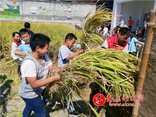 “同學(xué)們,你們看那一串串飽滿的稻穗掛在枝頭,長(zhǎng)得多喜人吶!現(xiàn)在我們要去收獲自己辛勤耕耘的勞動(dòng)果實(shí)了!大家要認(rèn)真學(xué)習(xí)怎樣割稻子,打稻谷,聽(tīng)從指揮,注意安全……”“老師,我要參與,我不怕累。”“我去年就學(xué)會(huì)了割稻子,今年我要學(xué)會(huì)打稻谷!”“我在電視上見(jiàn)過(guò),這個(gè)打谷子的工具歷史可悠久了。”