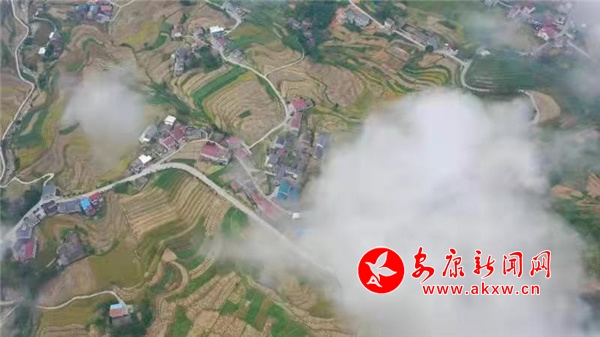 從空中俯瞰,在漫漫云海的覆蓋下,綿延數(shù)十公里的古梯田,層層環(huán)抱著山脊,從山腳盤繞到山頂,其線條如行云流水,其規(guī)模磅礴壯觀,與青山相互交融,盡顯自然和諧。走在田間的小道上,稻香撲面而來,粒粒飽滿的稻穗隨風(fēng)搖曳,村民們正搶抓晴好天氣,忙著收割、打粒、裝袋。放眼望去,金黃的稻田、翠綠的山巒和勤勞的村民勾勒出一幅優(yōu)美的豐收畫卷。