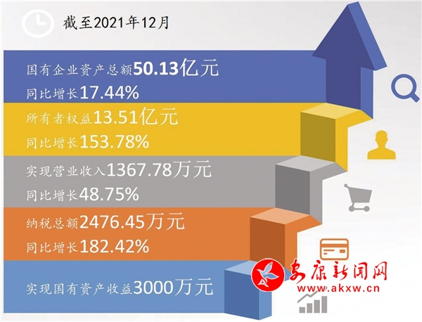 國有企業(yè)的發(fā)力,承接了市場(chǎng)缺位補(bǔ)位的經(jīng)營活動(dòng),大大助推了縣域重點(diǎn)項(xiàng)目和民生實(shí)事建設(shè),有力支持了脫貧攻堅(jiān),保障了群眾物質(zhì)文化需求。截至2021年12月,縣屬國有企業(yè)總資產(chǎn)50.13億元,同比增長17.44%,所有者權(quán)益13.51億元,同比增長153.78%;實(shí)現(xiàn)營業(yè)收入1367.78萬元,同比增長48.75%;納稅總額2476.45萬元,同比增長182.42%;實(shí)現(xiàn)國有資產(chǎn)收益3000萬元。