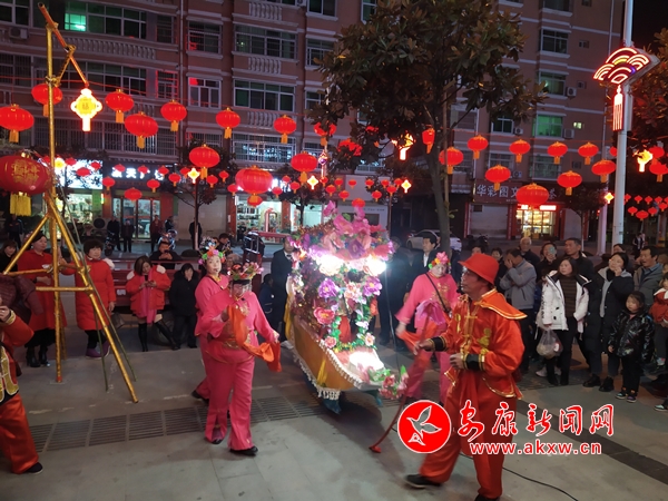 平梁鎮(zhèn)沐浴河村的采蓮船來(lái)到了縣城進(jìn)行賀新春歡度元宵節(jié)慰問演出活動(dòng)。彩船花枝招展,鮮亮耀眼。彩船旁邊的4位婀娜多姿的伴舞者,邁著輕盈的秧歌舞步,舞動(dòng)腰間的彩綢帶,為群眾送上優(yōu)美、中聽、吉祥的話語(yǔ),送去新春的恭賀祝福和濃郁的鄉(xiāng)情與熱情,深受干部居民群眾的歡迎。