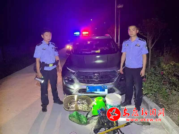 7月31日,漢陰公安雙乳派出所接到護河信息員反映夜間有人在轄區(qū)三同村段月河內電魚的線索后,該所組織警力進行核查布控,23時許,民警發(fā)現(xiàn)有兩名嫌疑男子正在河道內使用電瓶裝置以電魚方式進行非法捕撈。兩名嫌疑人發(fā)現(xiàn)民警后,立即丟棄電瓶裝置、漁獲物等作案工具逃離,經過民警細致排查,現(xiàn)場查扣嫌疑車輛一臺,鎖定了犯罪嫌疑人。