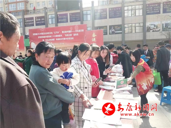 3月3日下午,縣圖書館在澗池鎮(zhèn)集鎮(zhèn)廣場(chǎng)參加了漢陰縣2023年度文化科技衛(wèi)生“三下鄉(xiāng)”、我們的中國(guó)夢(mèng)----文化進(jìn)萬(wàn)家、文明實(shí)踐宣講團(tuán)黨的二十大精神宣講、“科技之春”宣傳月節(jié)“文化點(diǎn)亮家園”戲曲進(jìn)鄉(xiāng)村集中示范活動(dòng)?h直多家單位組織參加了此次活動(dòng);顒(dòng)現(xiàn)場(chǎng)氣氛熱烈,節(jié)目?jī)?nèi)容豐富、形式多樣,有歡快的歌舞、詼諧的小品,醫(yī)務(wù)工作者為廣大村民義診,政法部門等單位為群眾送政策?h圖書館的紅色經(jīng)典圖書和科技類、農(nóng)業(yè)類書刊吸引了附近十里八鄉(xiāng)的群眾前來(lái)觀看,紛紛挑選符合自己口味的書籍,進(jìn)行現(xiàn)場(chǎng)閱讀。在送書環(huán)節(jié),市民們爭(zhēng)相登記、咨詢、關(guān)注公眾號(hào),他們把書籍拿到手里,如獲至寶,紛紛表示希望縣圖書館多開展這樣的活動(dòng),豐富他們的業(yè)余文化生活。